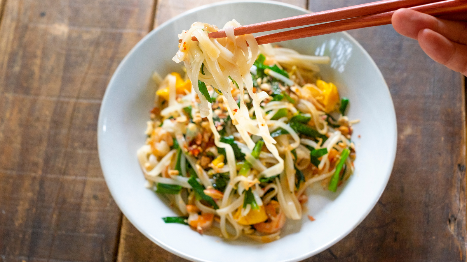 Add bean sprouts, scallions, and peanuts. Salt and pepper to taste.
