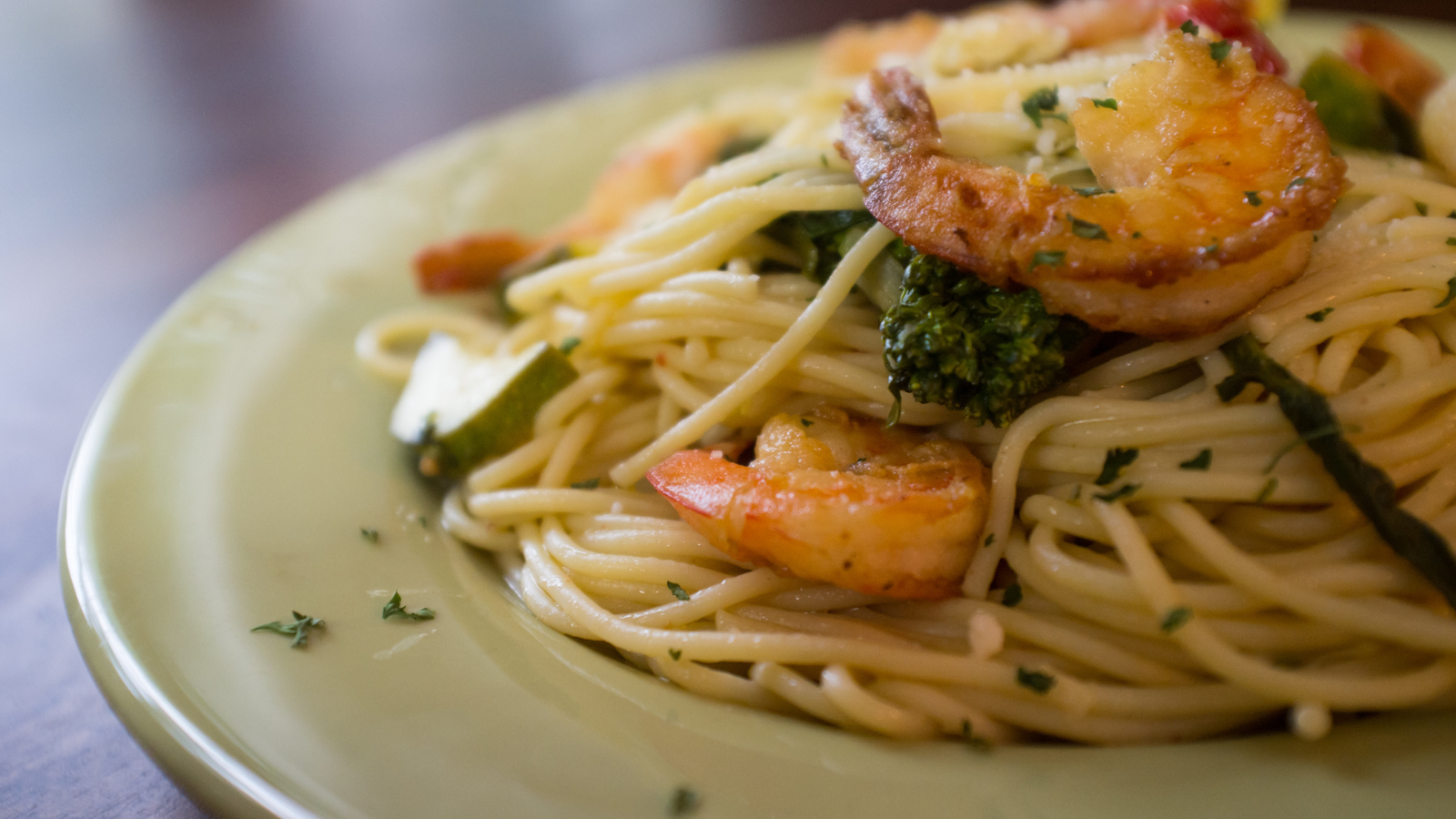 Serve shrimp and sauce over pasta with a lemon wedge and parsley.
